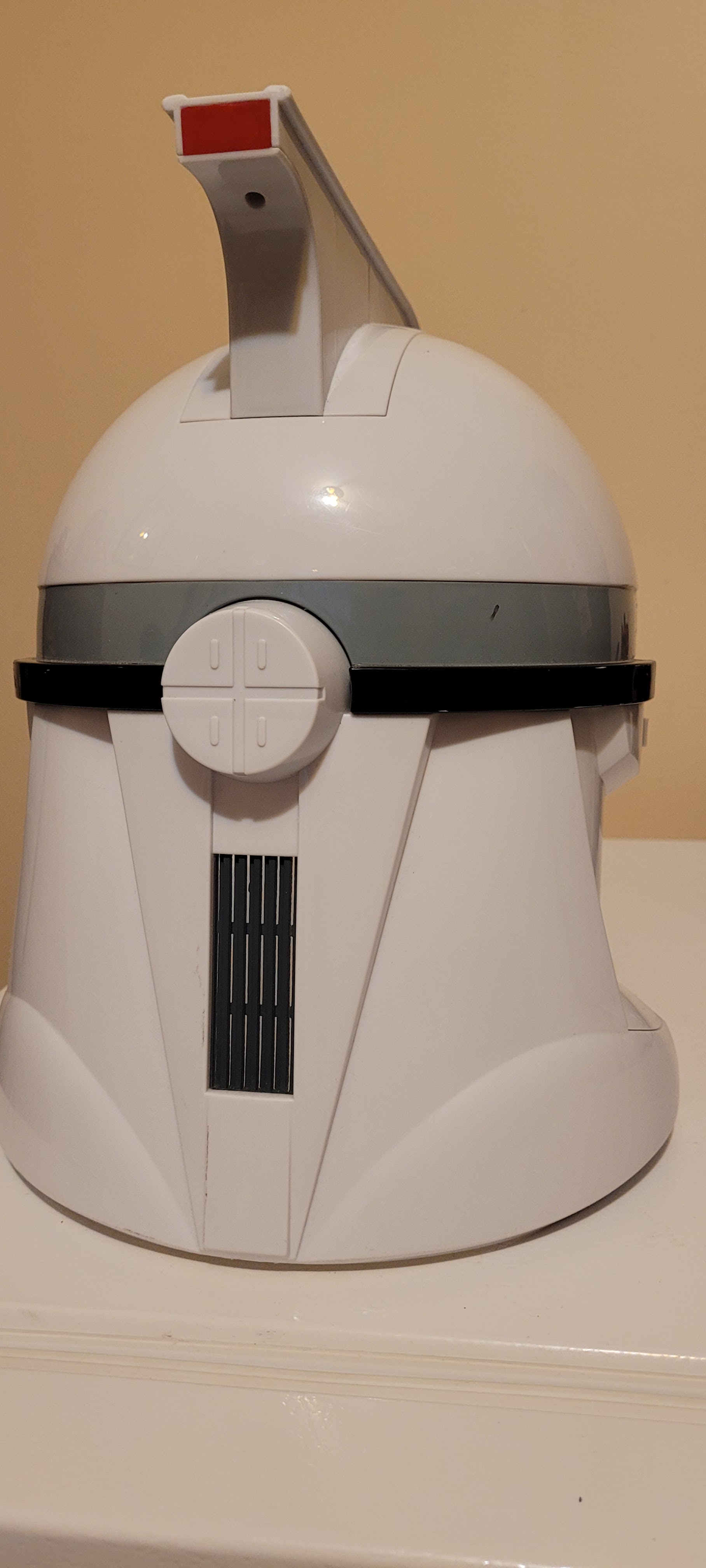 The initial offering by Hasbro has its issues (overly large visor, open gaps, seam lines) but once modified makes a decent prop.